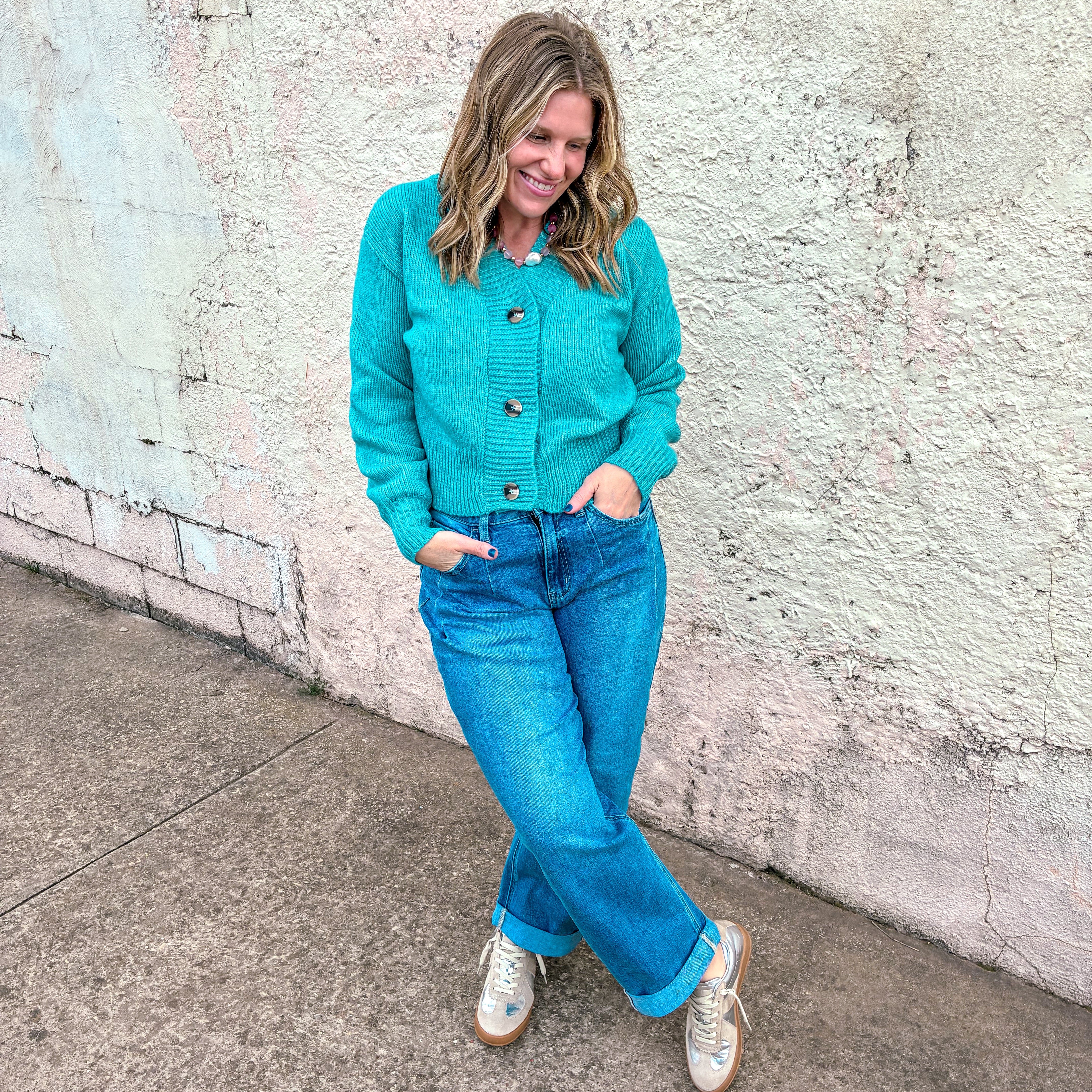 Soft Blend Button-Front Cardigan - Dusty Teal