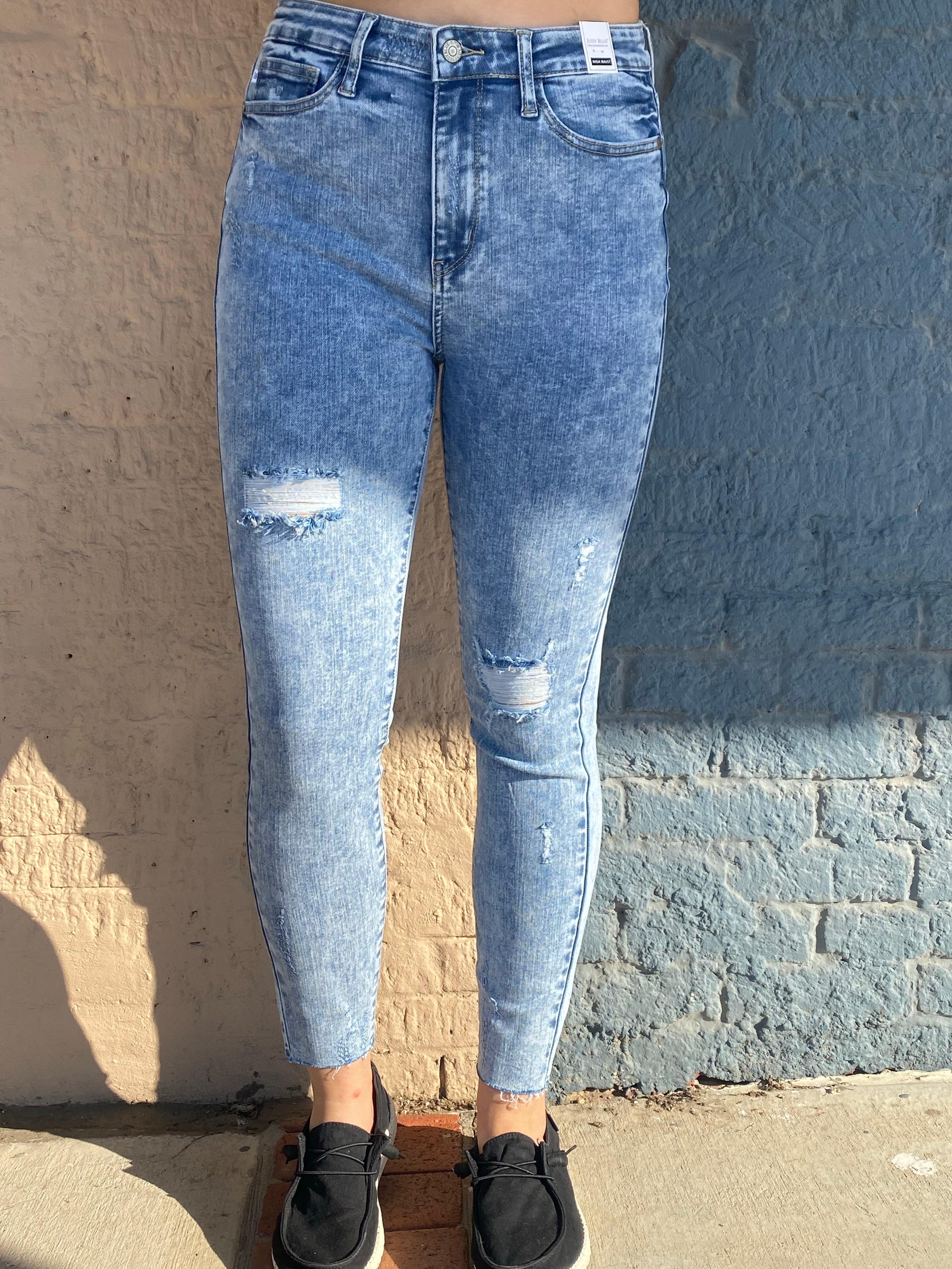Nothing like a little bit of destressed detail on a acid wash skinny jeans! These have just the right amount, and are perfect for cooler weather!