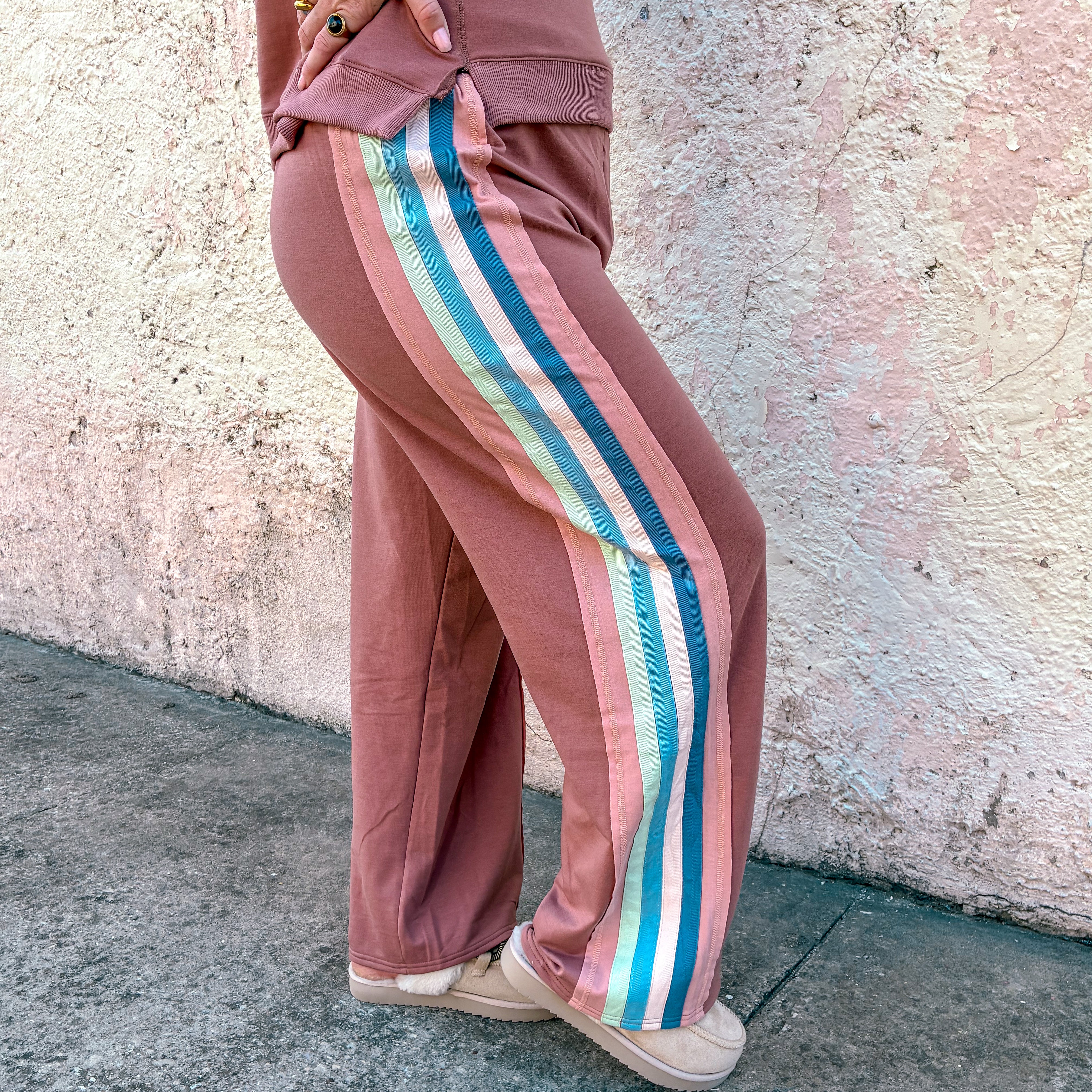 Experience effortless comfort and style with the Chill Mode Knit Set in Dark Mauve. The oversized top features drop shoulders, long sleeves, and a round neck, finished with a ribbed hem for a refined look. The matching wide-leg pants offer a relaxed fit with an elastic waistband and adjustable drawstring, ensuring customizable comfort. Perfect for lounging or casual outings, this color block knit set combines laid-back design with modern detailing for versatile everyday wear.