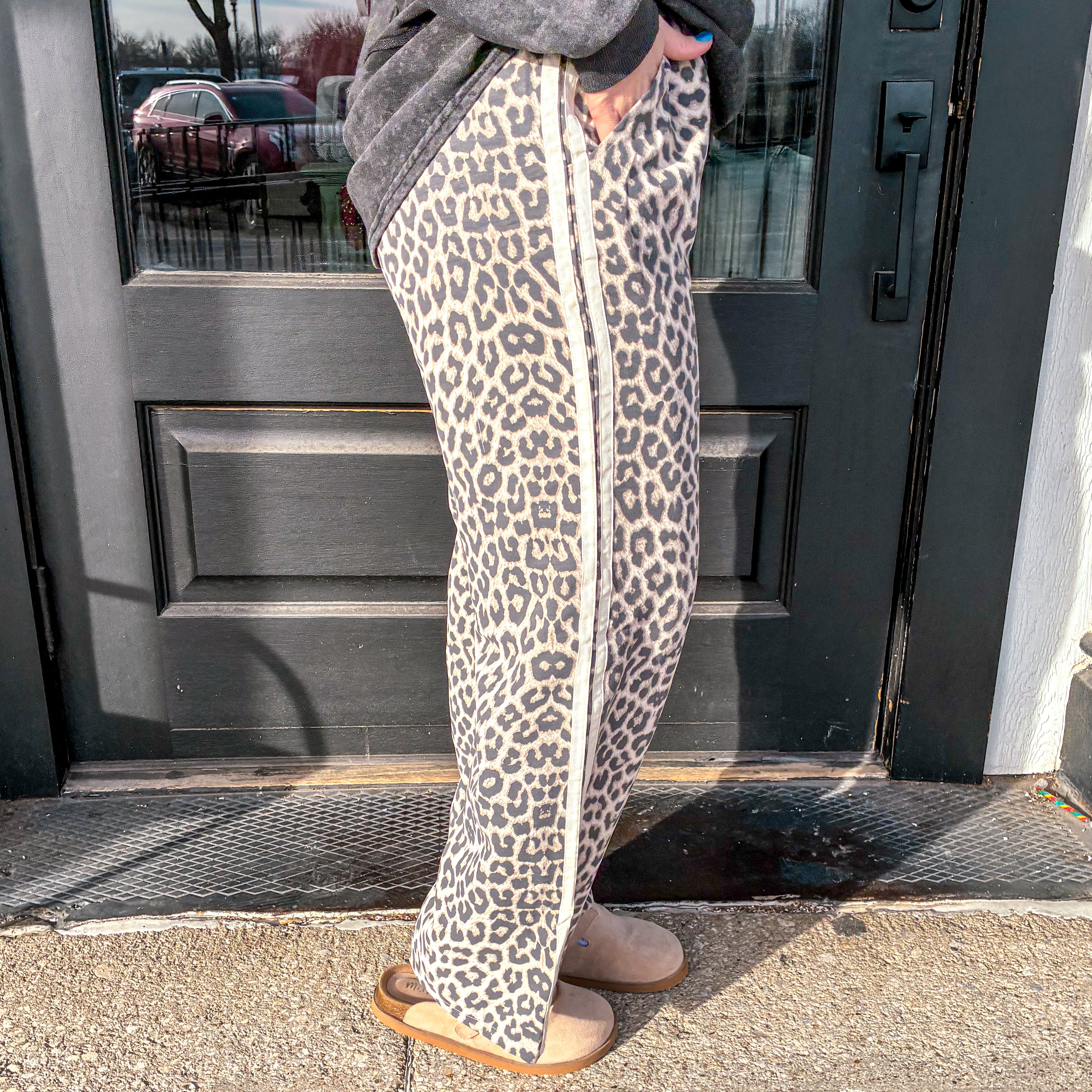These cream-colored pants feature a striking leopard print cotton twill tape detail that adds visual interest to a classic silhouette. Crafted from quality materials, they offer a versatile piece that transitions seamlessly from casual to elevated styling. The distinctive tape detailing provides texture and dimension, making them a standout choice for those seeking to incorporate bold patterns into their wardrobe without overwhelming their look. Perfect for layering or wearing as a statement piece.