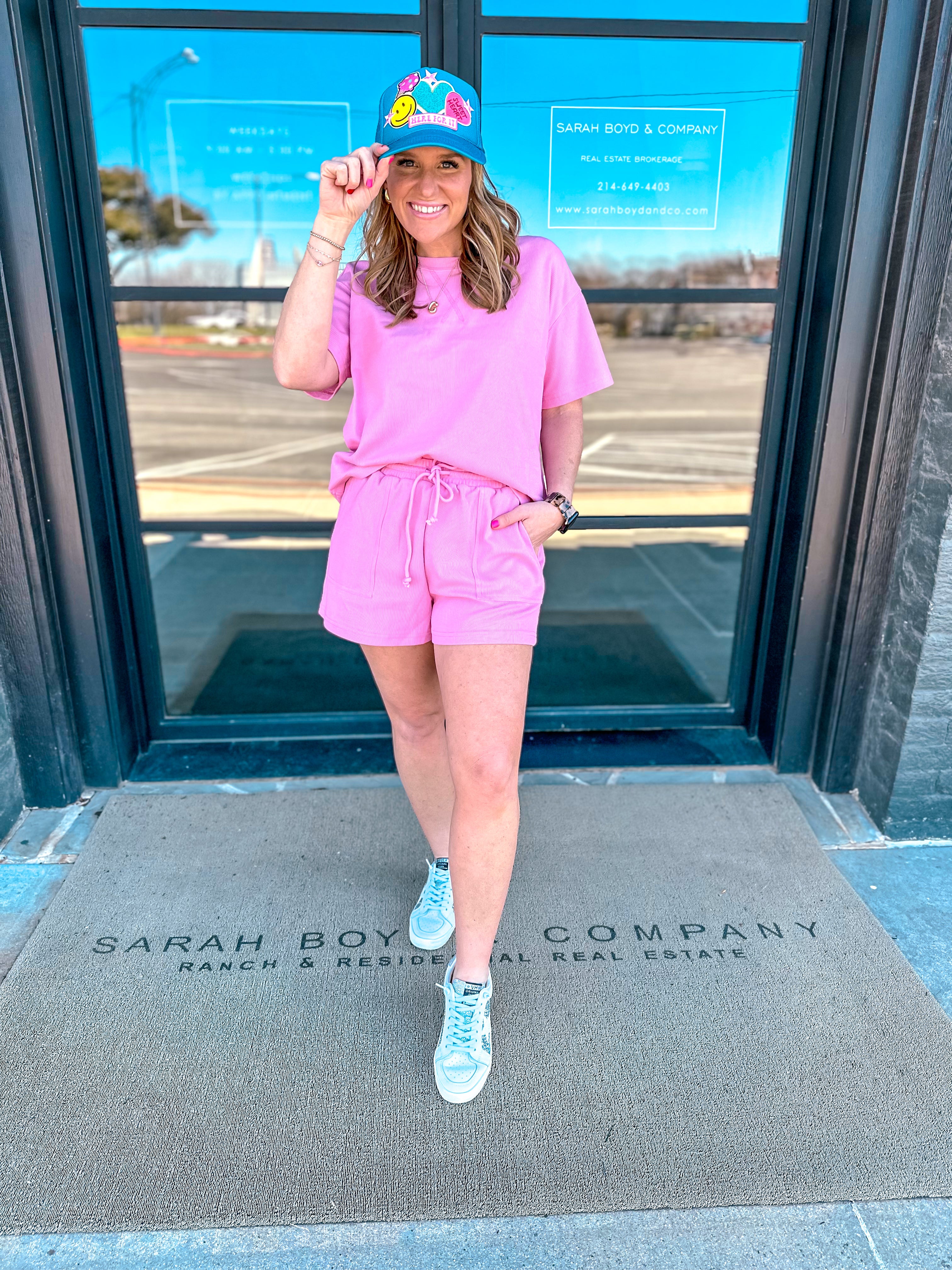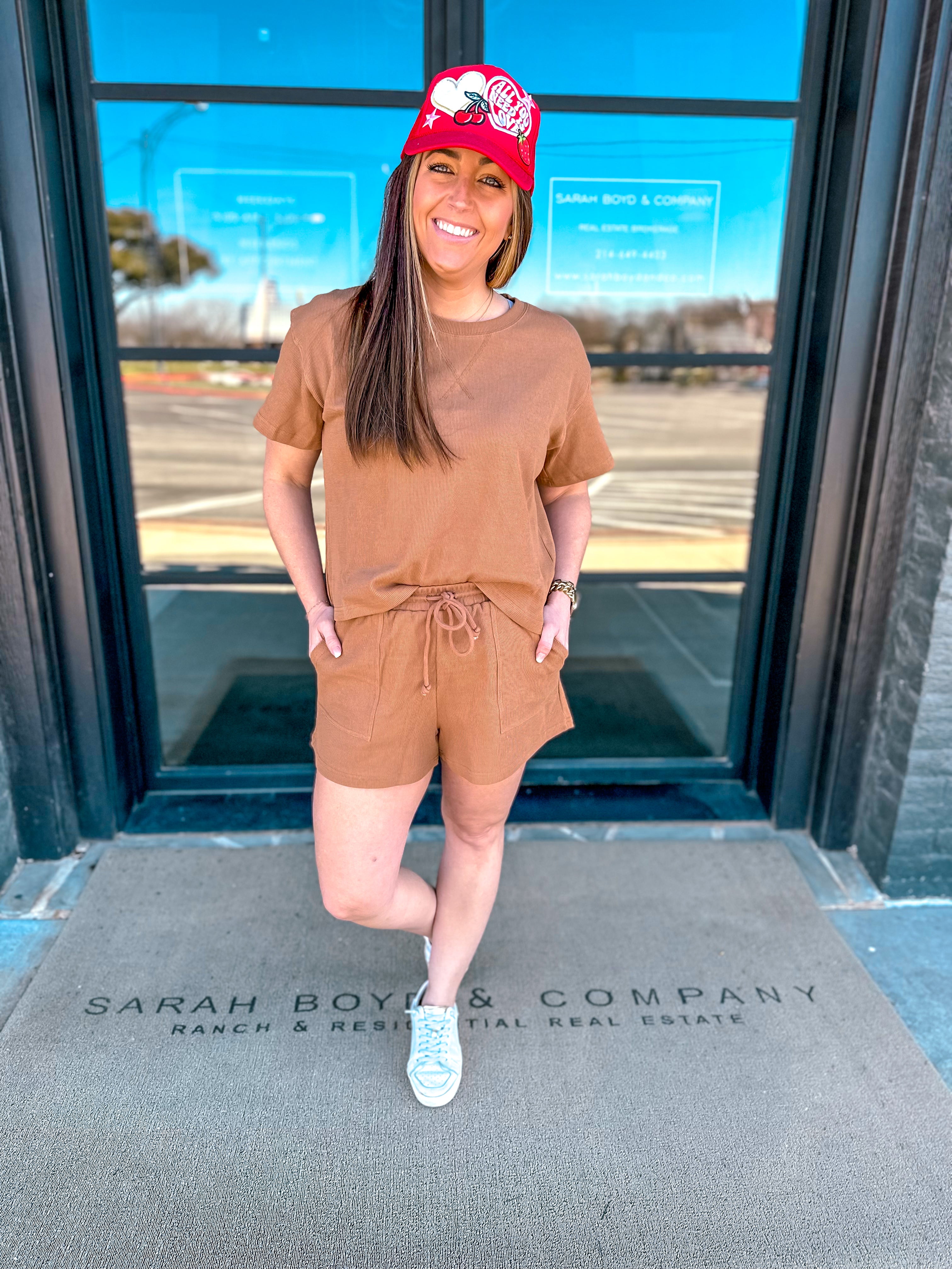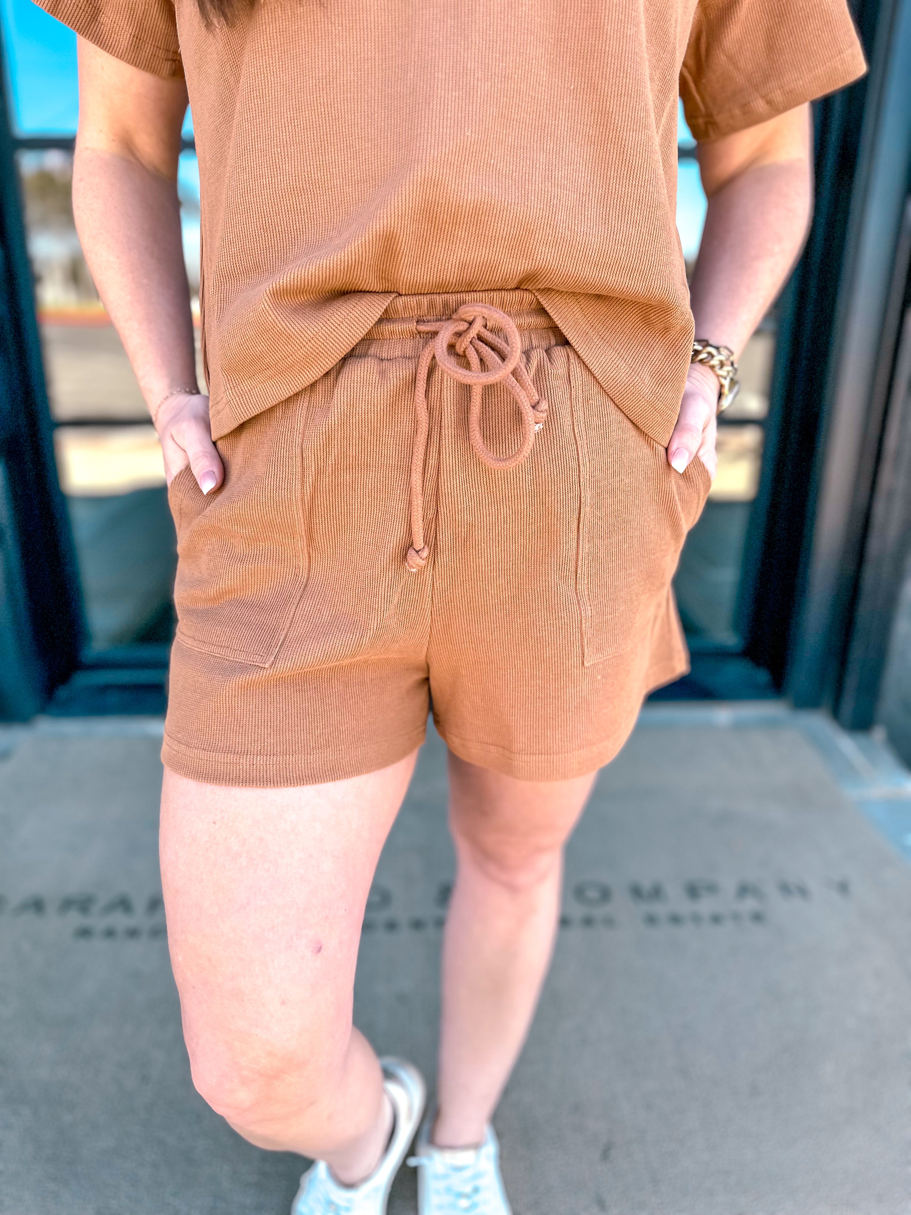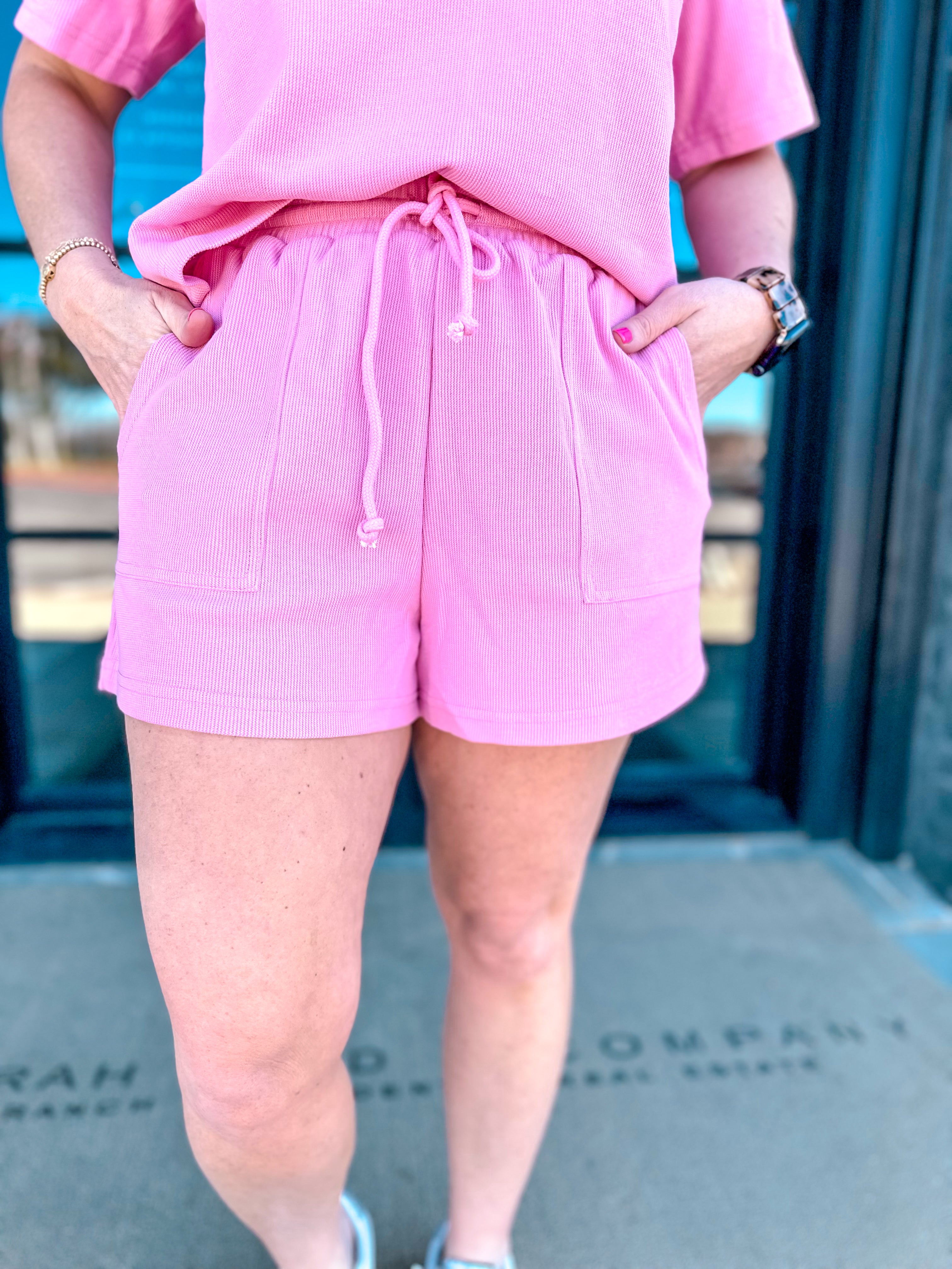 Elevate your casual style with our Keep Up Sets. This two piece set features a comfortable knit top and shorts, complete with an elastic waistband and drawstring for the perfect fit. Stay effortlessly stylish and comfortable all day long.