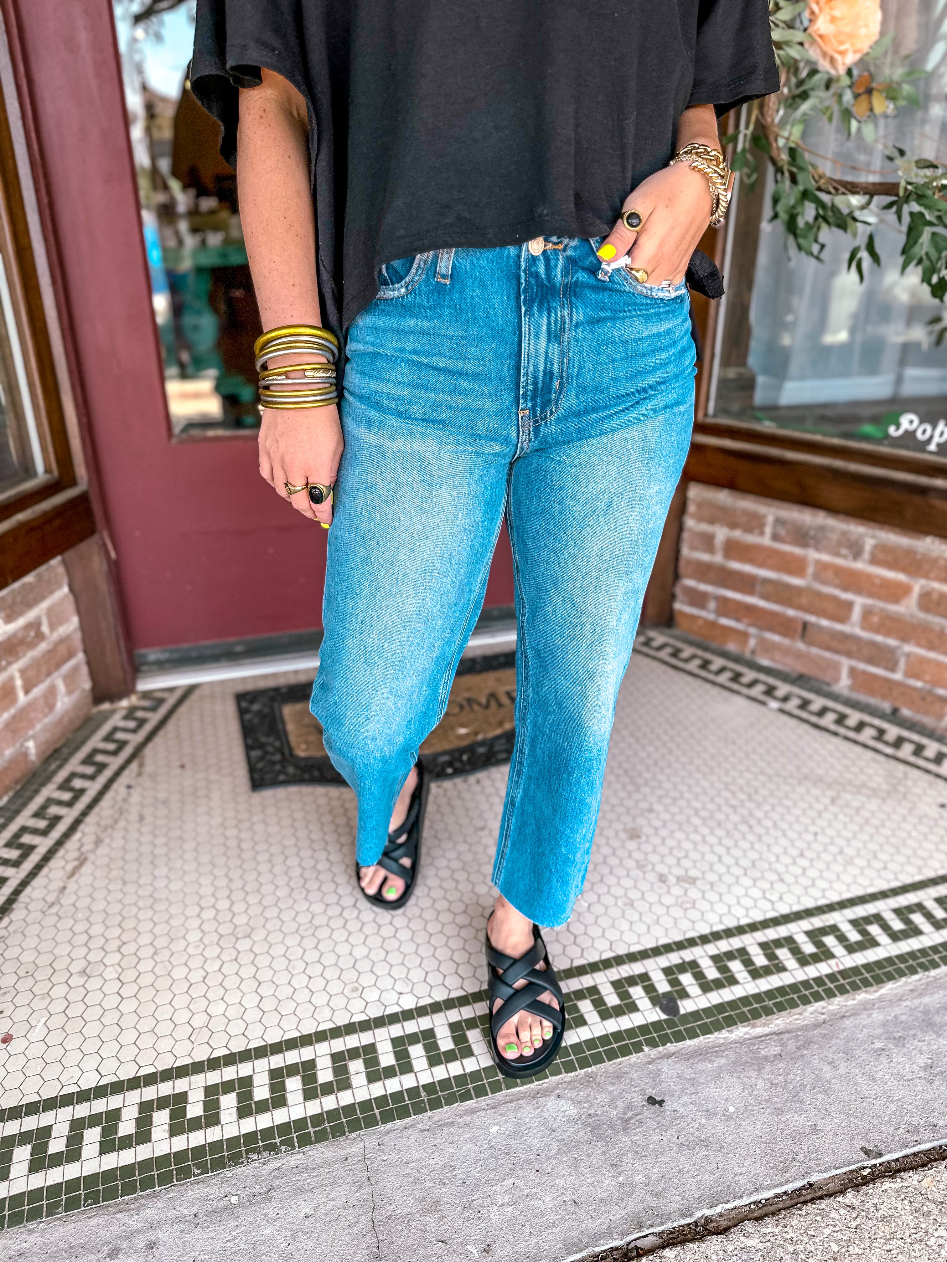 These Nora Denim jeans feature a high rise, regular straight leg, and stylish fringe waistband that pairs well with any look. The versatile style is perfect for dressing up or down.