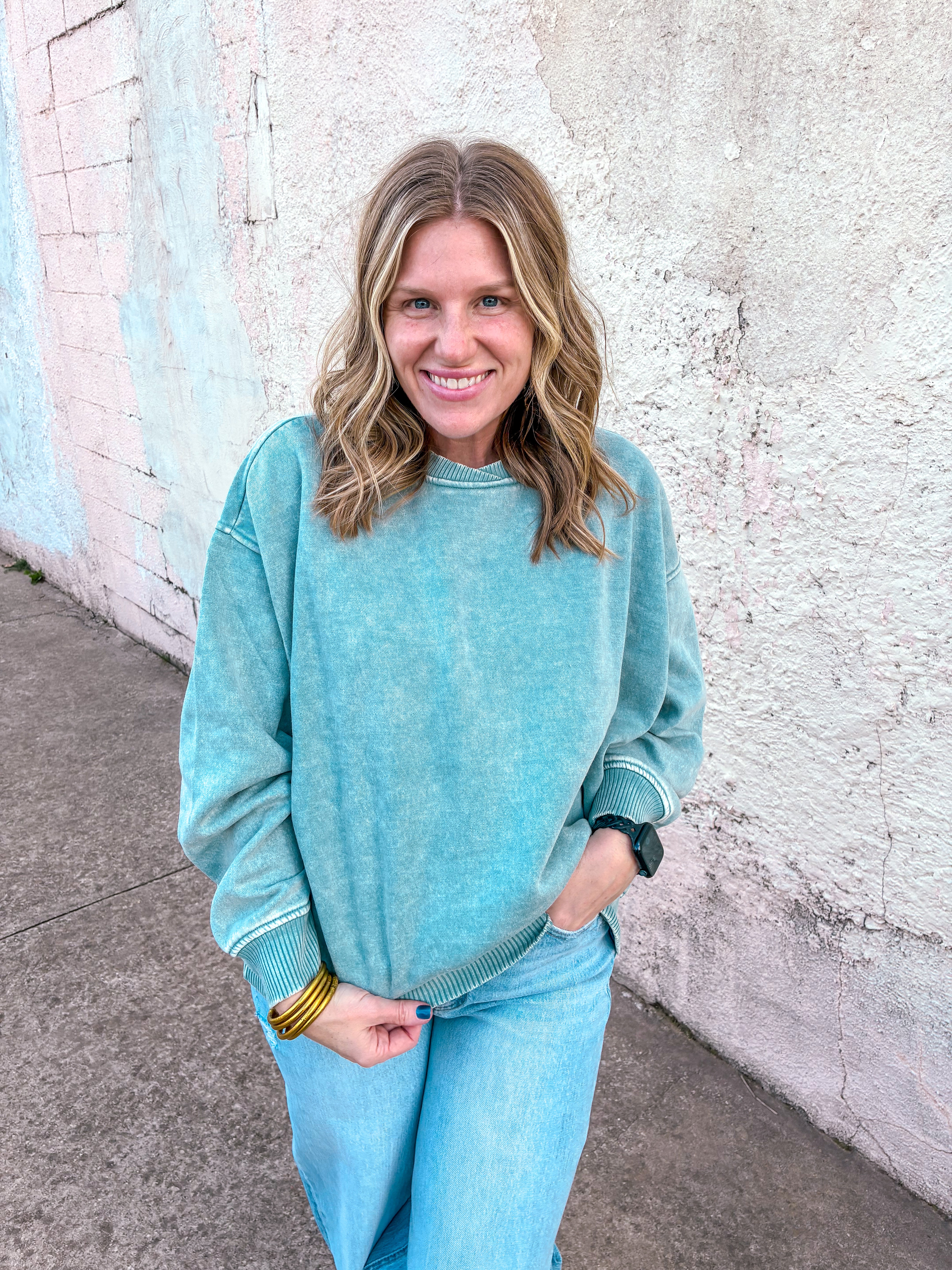 Elevate your casual wardrobe with this acid wash fleece pullover, designed for effortless style and comfort. The oversized silhouette provides a relaxed fit that works beautifully layered or worn solo, while distinctive balloon sleeves add contemporary flair to a timeless piece. The overlap neckband creates a refined detail that sets this pullover apart, offering both visual interest and functional comfort. Crafted from quality fleece, it's the perfect go-to for cooler days when you want to look intentional without sacrificing ease.