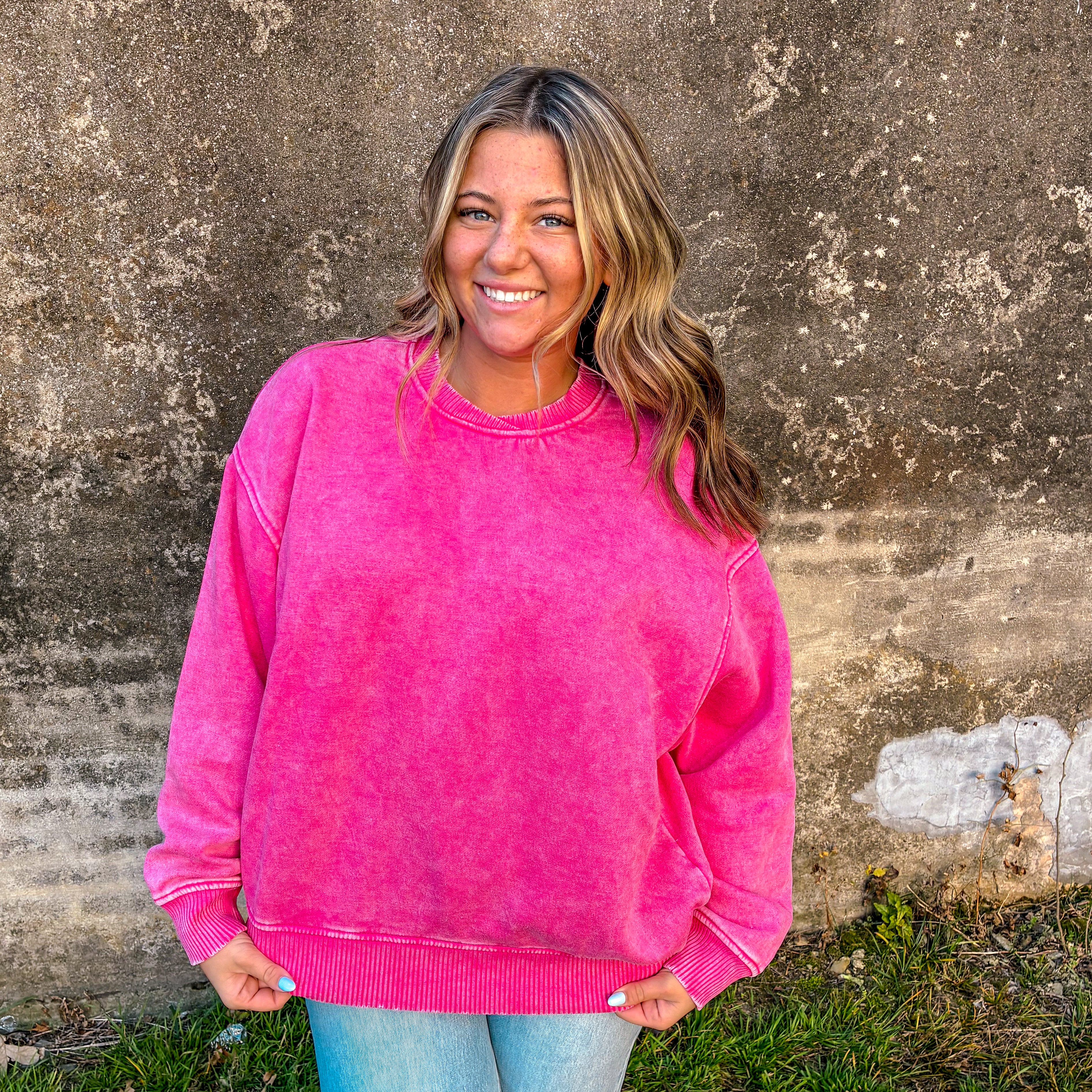 Overlap Fleece Pullover - Hot Pink