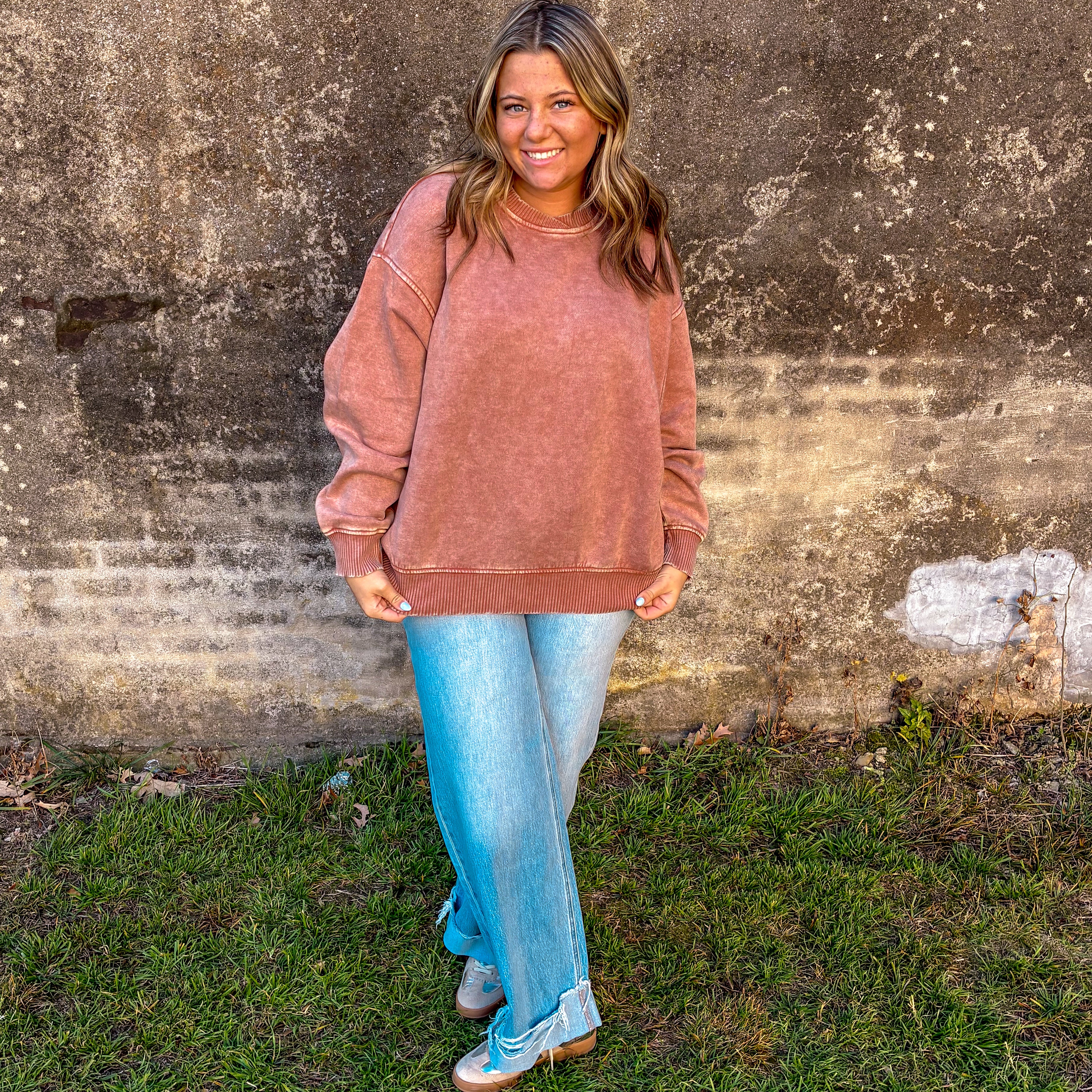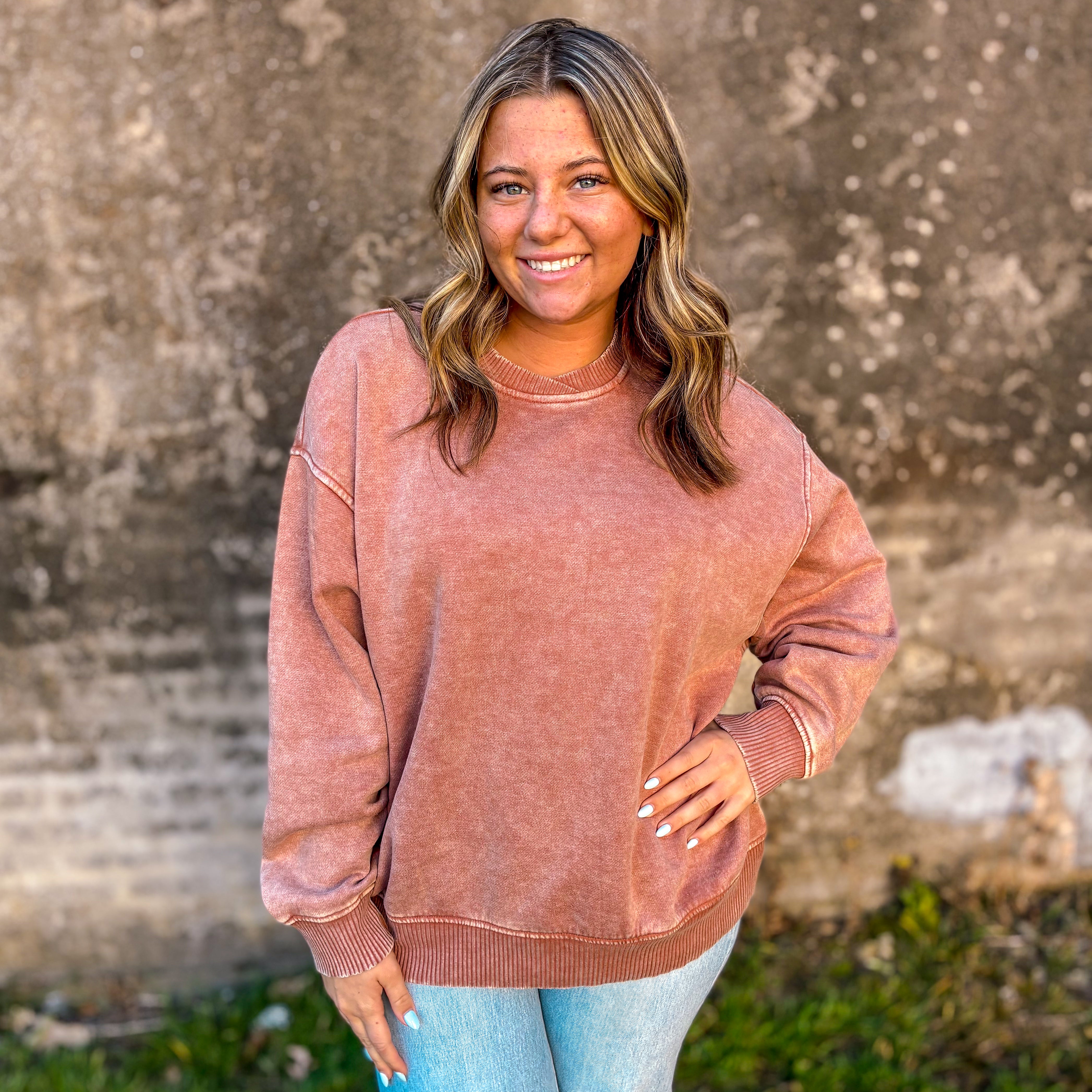 Elevate your casual wardrobe with this acid wash fleece pullover, designed for effortless style and comfort. The oversized silhouette provides a relaxed fit that works beautifully layered or worn solo, while distinctive balloon sleeves add contemporary flair to a timeless piece. The overlap neckband creates a refined detail that sets this pullover apart, offering both visual interest and functional comfort. Crafted from quality fleece, it's the perfect go-to for cooler days when you want to look intentional without sacrificing ease.