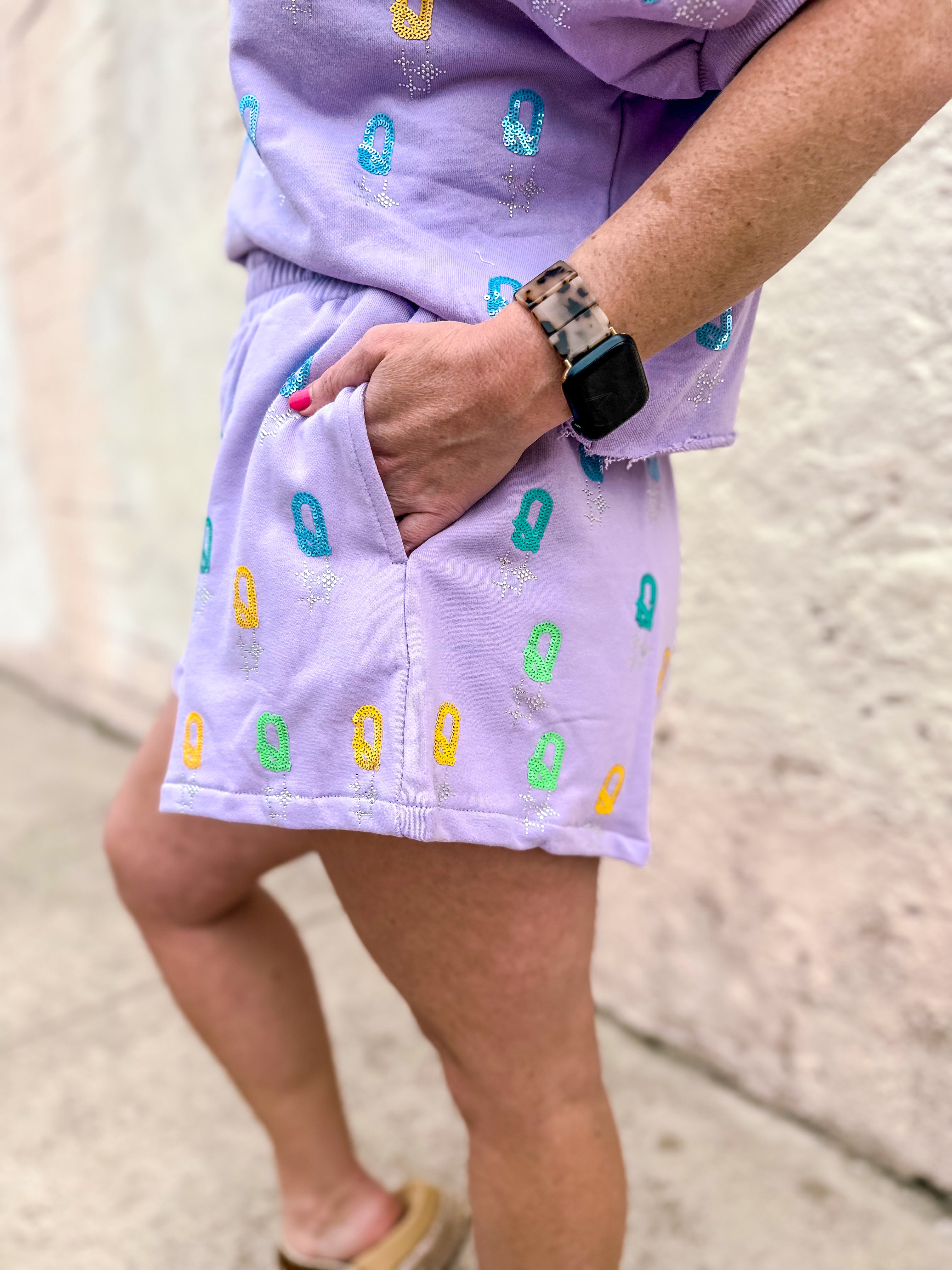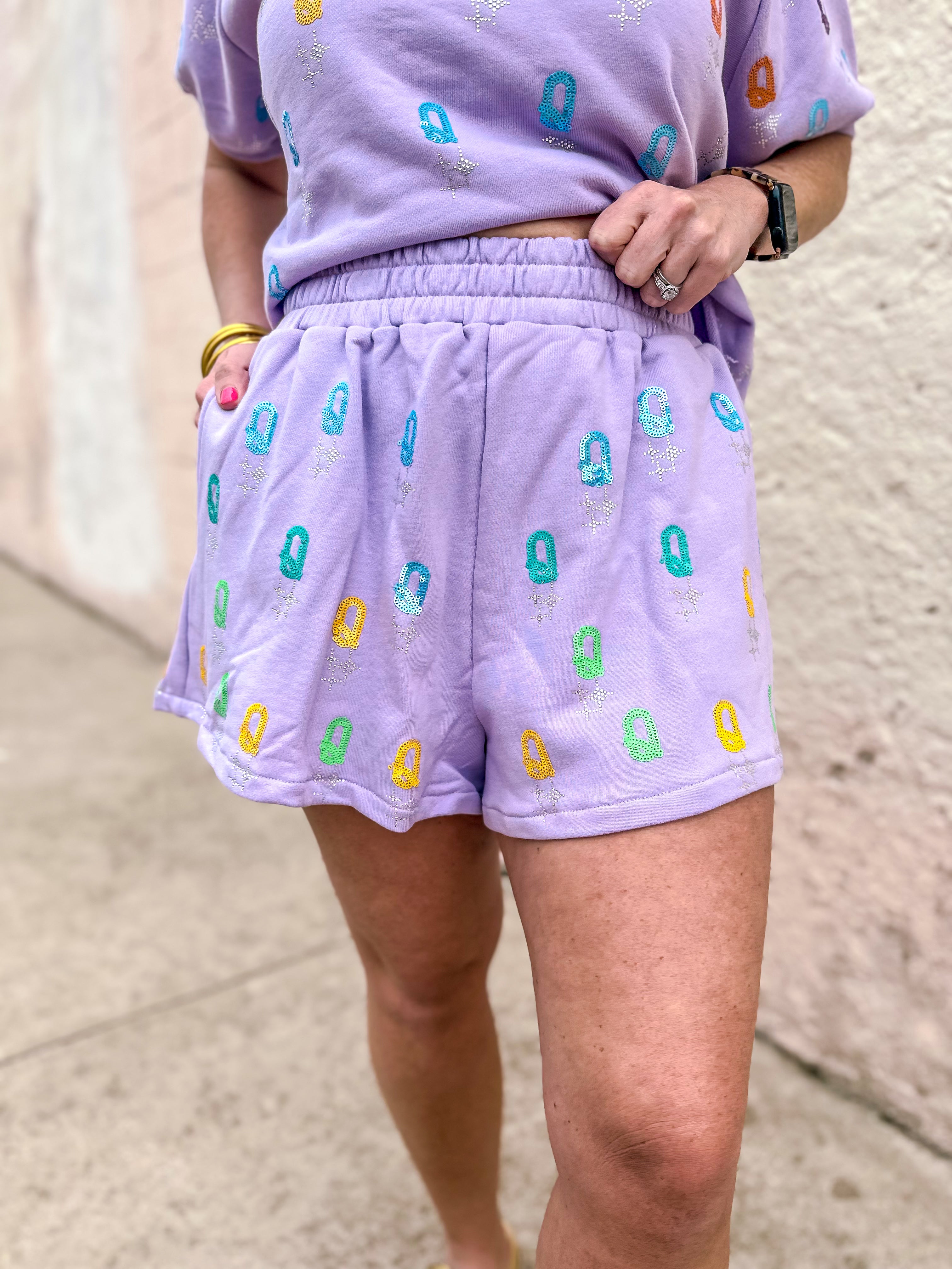 Queen of Sparkles: Lavender Q All Over Shorts