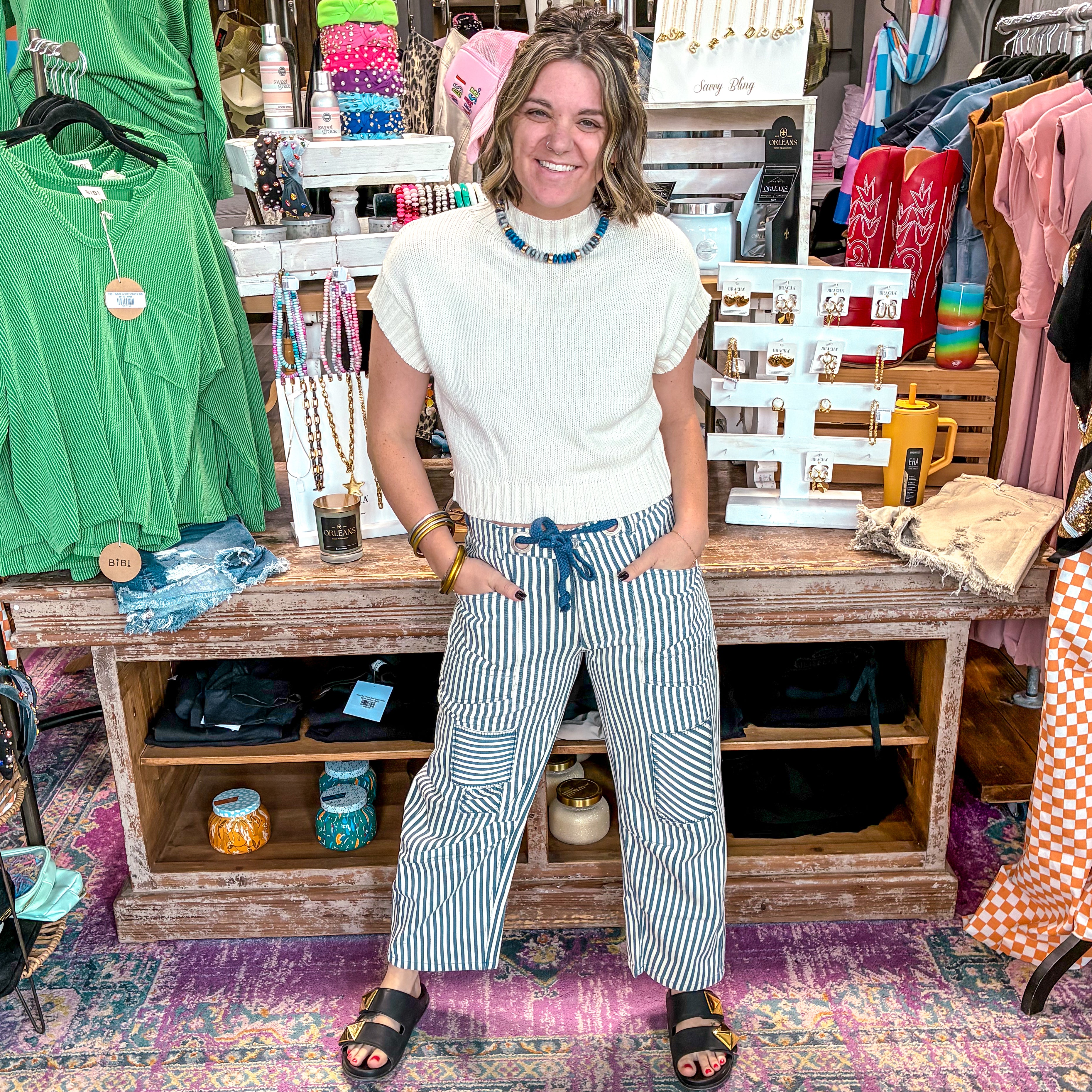 Seaside Stripes Barrel Pants offer a refined take on classic navy-striped twill, combining durability with tailored comfort. Crafted from sturdy twill fabric, these pants provide a structured fit while maintaining breathability for extended wear. The timeless navy stripes enhance versatility, making them suitable for both casual and elevated looks. Ideal for those seeking a blend of style and functionality, these barrel pants deliver expert craftsmanship and enduring design aesthetics.