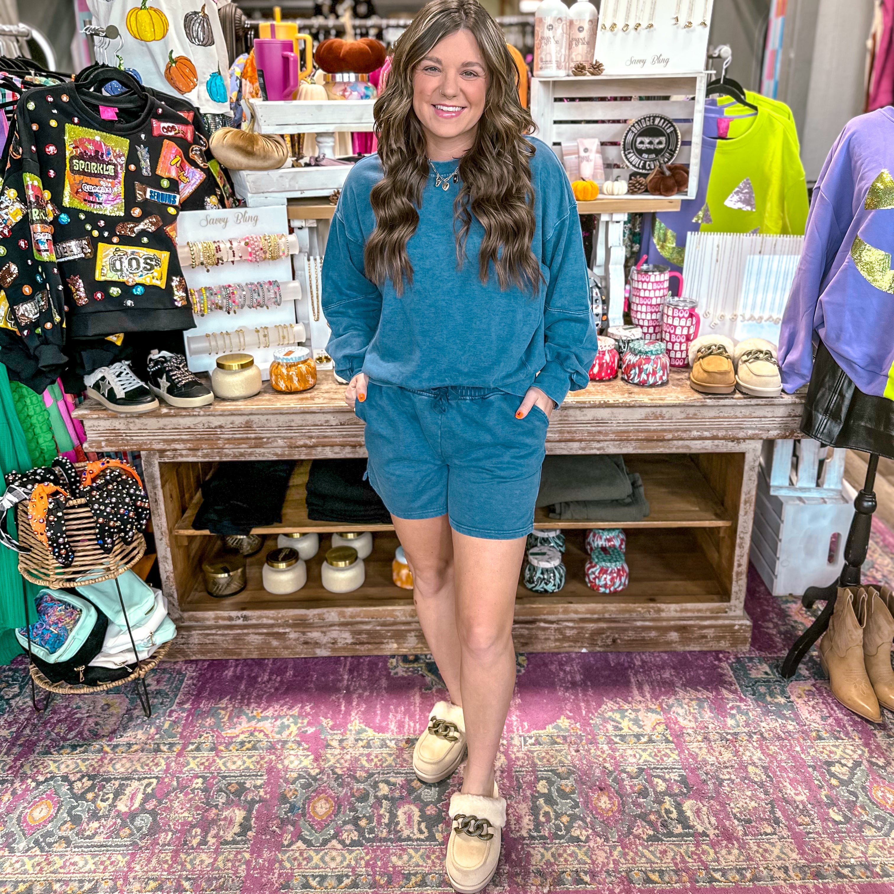 Experience ultimate comfort and style with our Slow it Down Short Set. Made with soft French Terry, this set includes a long sleeve top for added warmth. Perfect for lounging or running errands, you'll love the cozy and chic look of this set. Upgrade your wardrobe with this must-have duo.