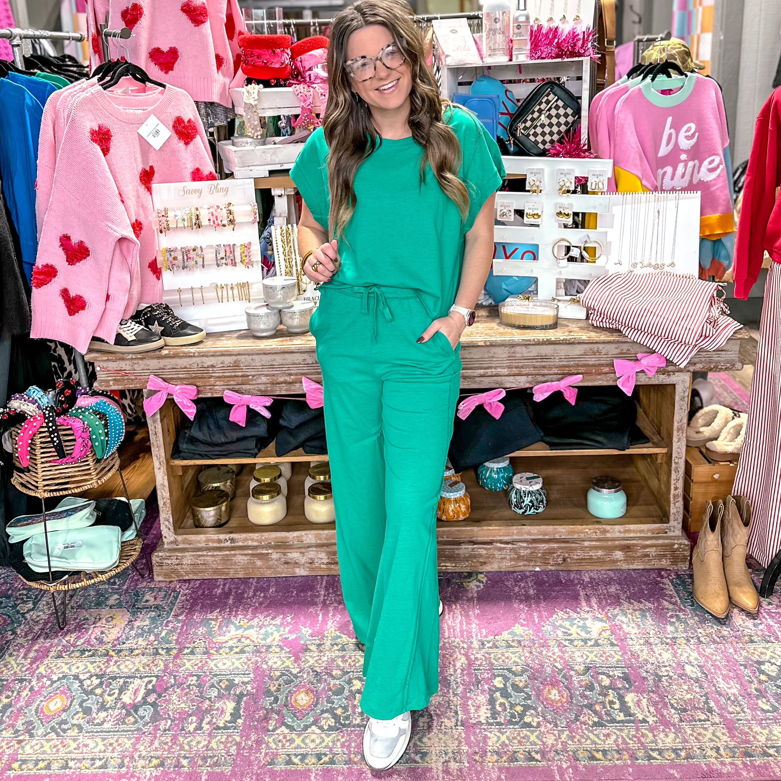 This Kelly Green Sweet Escape Lounge Set includes a comfortable lounge pant and a stylish slub top, perfect for a cozy night in or a lazy day at home. With its soft material and flattering fit, you can relax in comfort while still looking chic. Ideal for unwinding and rejuvenating.