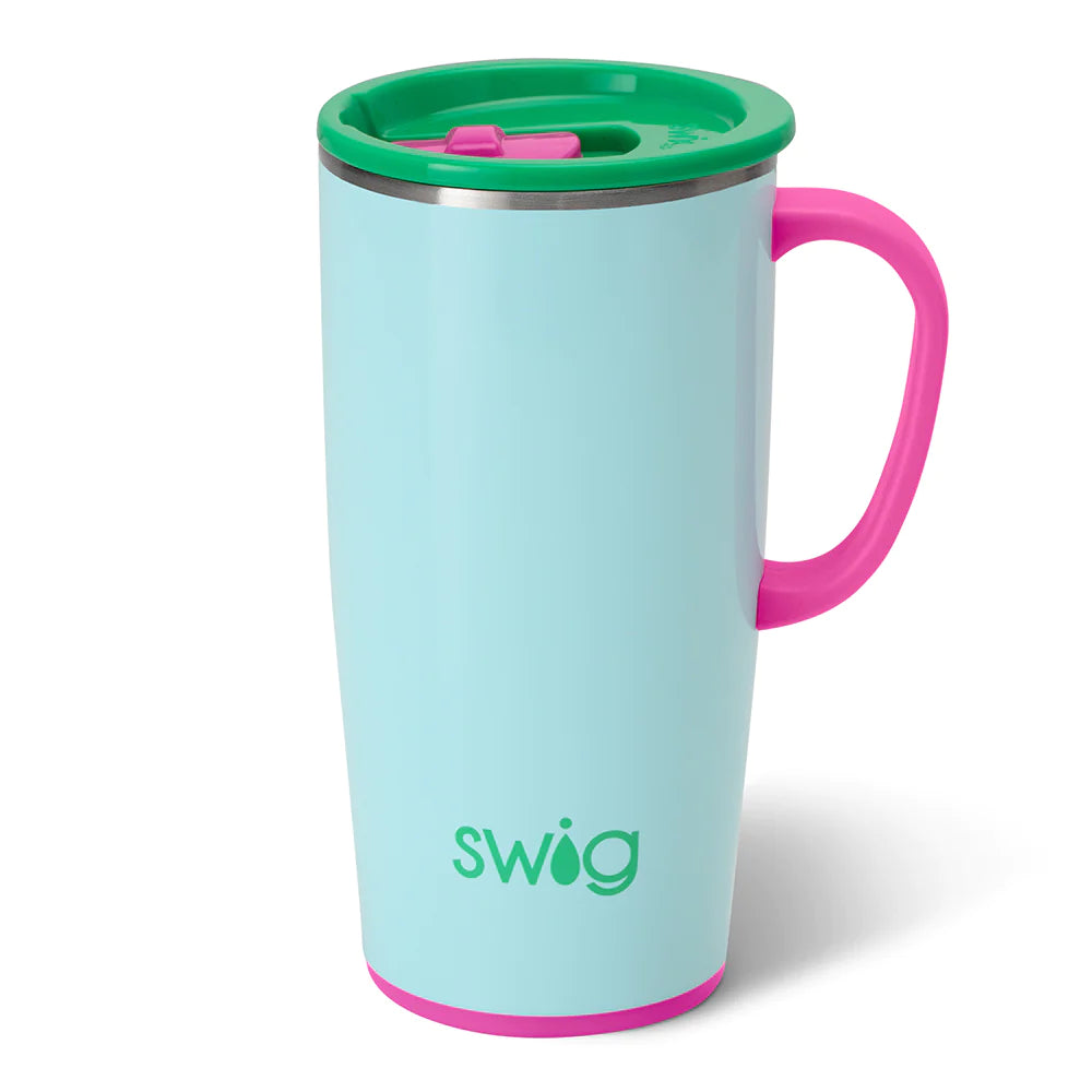 For those who love our classic mug but need a little bit more in their cup, our 22oz Travel Mug is a must-have. With more ounces to sip and a cup holder friendly profile, she's got what it takes to get through the morning commute.