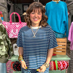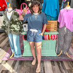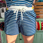 The Golden Hour Set delivers effortless style with its coordinated two-piece shorts ensemble. Featuring classic navy and white stripes, this set pairs a matching top and shorts for a polished, put-together look that transitions seamlessly from casual outings to relaxed gatherings. The striped pattern adds visual interest while remaining versatile enough to mix with your existing wardrobe. Crafted for comfort and style, this set is an essential addition to any seasonal collection.