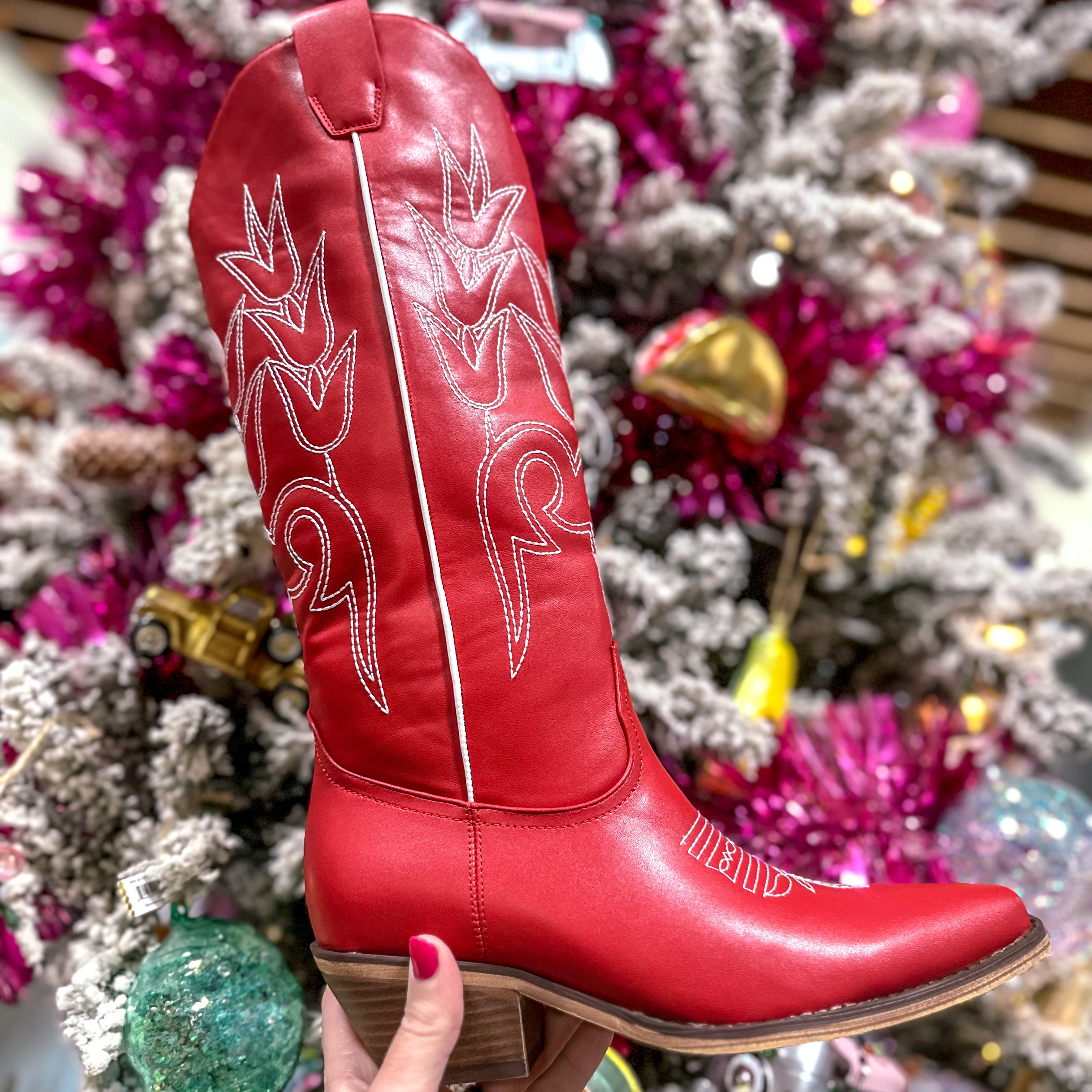 Introducing the Reba Boots - a stylish pair of red and white cowboy boots. Made with high-quality materials, these boots are both fashionable and durable. Perfect for any occasion, these boots will make a statement and boost your confidence. Order yours today!