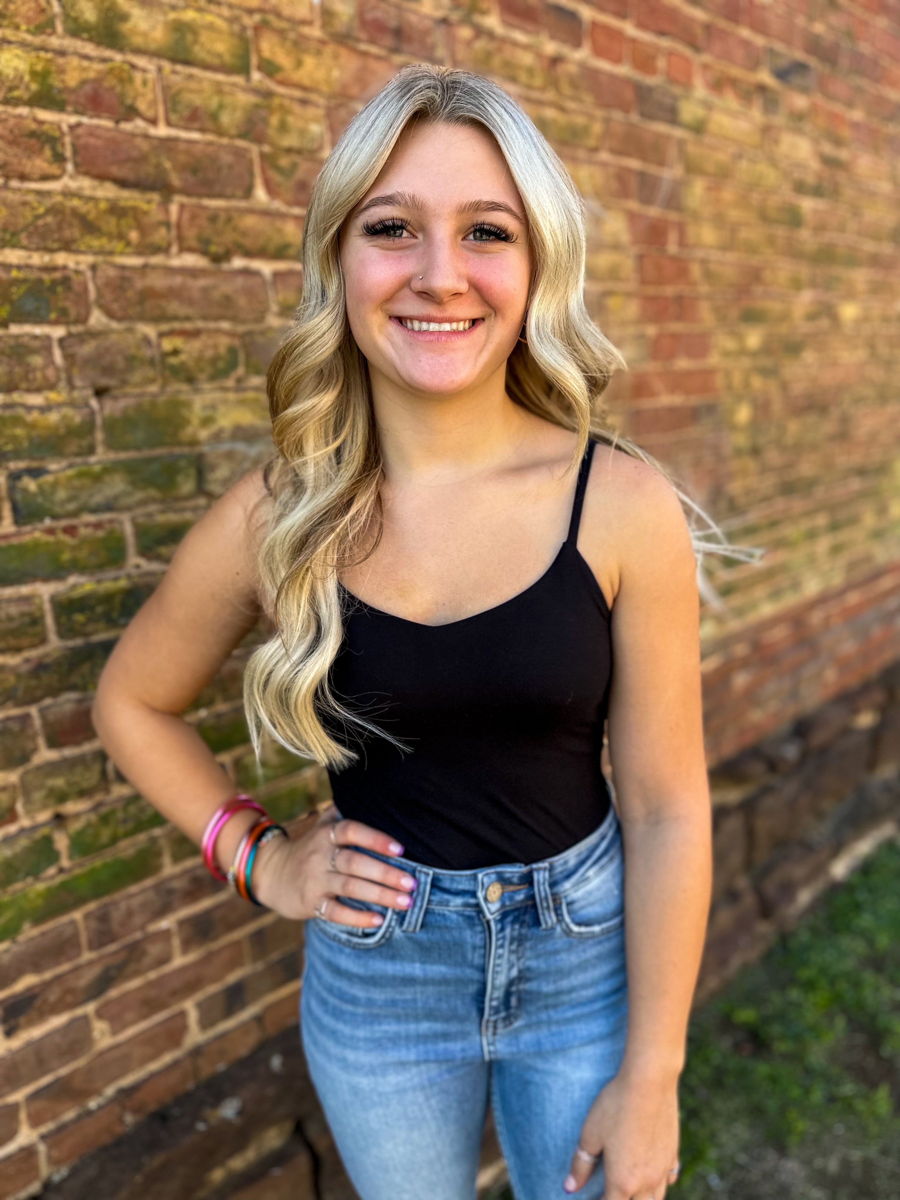 This Time Tomorrow Bodysuit is the perfect foundation for your wardrobe. Featuring butter soft square neck straps, this bodysuit will add a flattering shape to any look. Crafted with durable fabric, it's designed to last. Make an investment piece for your wardrobe with this bodysuit.