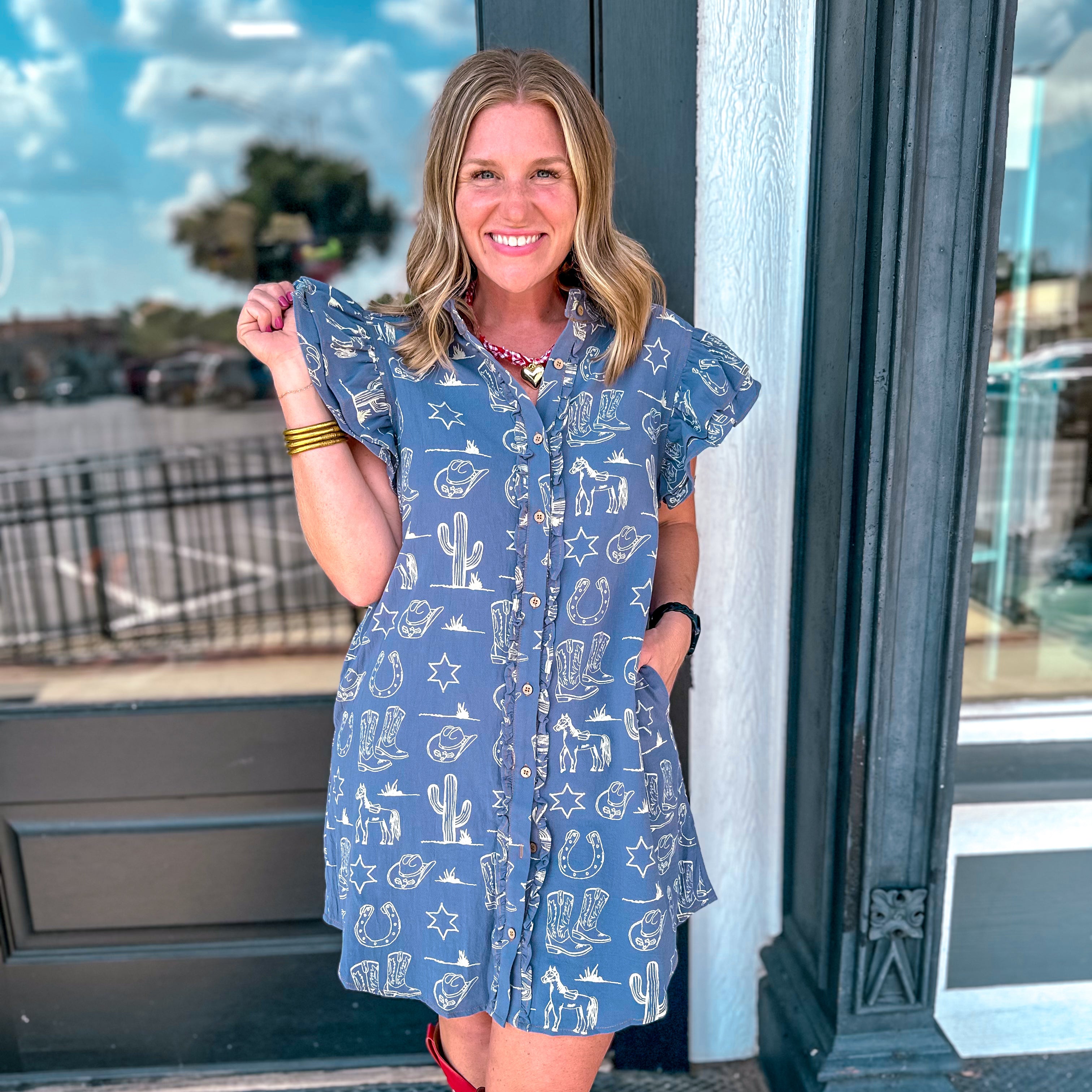 This Wild West Mini Dress combines a classic western graphic design with a soft washed fabric for exceptional comfort and style. Featuring a button-down front, it offers a flattering silhouette that’s perfect for casual outings or stylish events. The mini length adds a youthful edge while maintaining a versatile look, making it an essential piece for those who appreciate authentic western-inspired fashion with modern wearability.